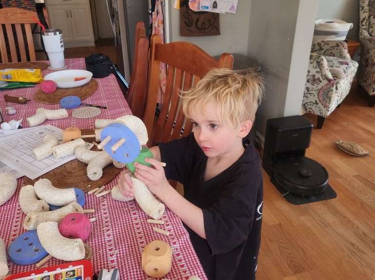 My nephew building a robot with a control panel, complete with a robot voice