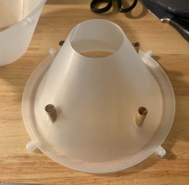 My first idea was to drill through the mycelium and have the dowels connect the the base