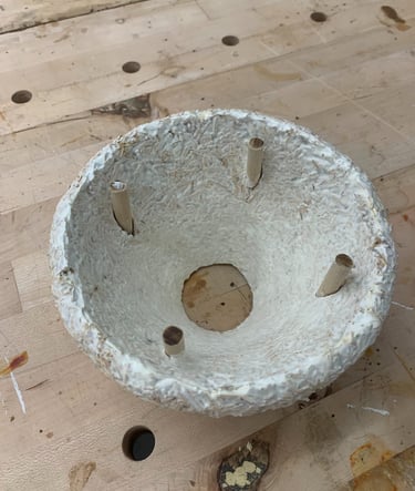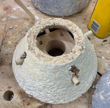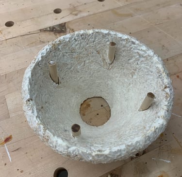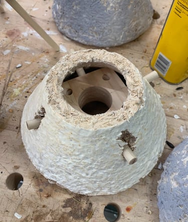After this, I tried adding the dowels in the mold with the mycelium so the mycelium acts as a natural glue