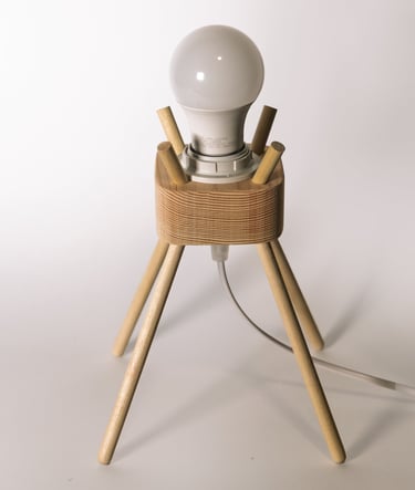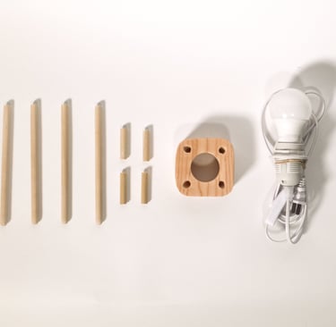 The base is made without any glues or hardware. The large part of the base is made from 2x4 scraps and the light bulb is easily removable and replaceable, making it safe for disposal